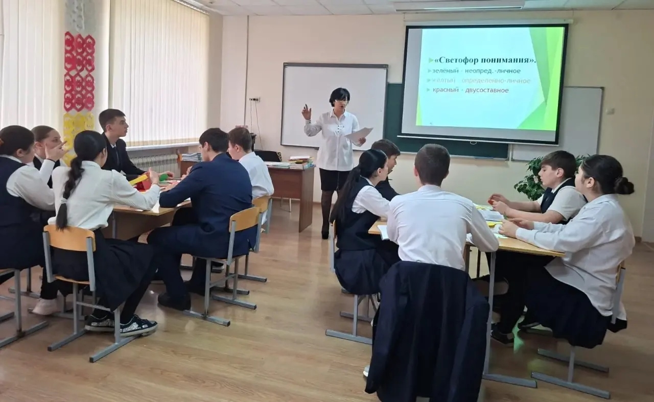 Продолжается месячник открытых уроков в нашей школе. Во вторник открытый урок в 8 классе с элементами ОГЭ и ВПР по теме «Неопределенно- личные предложения», провела учитель русского языка и литературы Хадзарагова Э.А. К уроку был подготовлен проект по теме, также учителем были использованы разные методические находки для того , чтобы учащиеся закрепили и повторили материал.